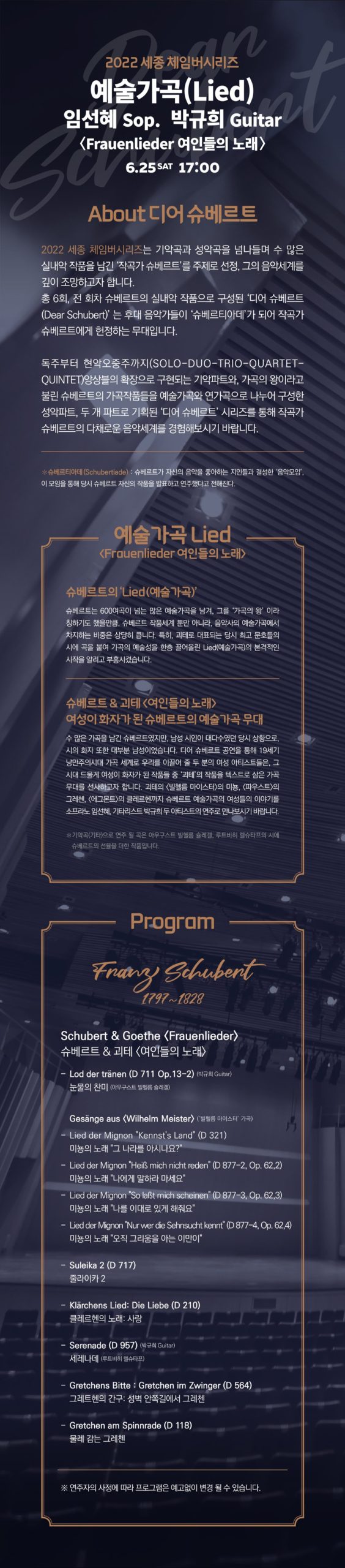 “Dear Schubert” – Lieder Recital with Kyuhee Park (Guitar) “Frauenlieder”