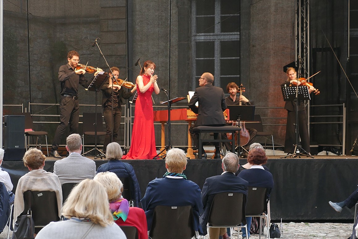 It was Sunhae’s first performance with audience in Europe after the COVID-19 pandemic made every concert difficult or impossible. They minimized the number of performers, prepared the stage at the courtyard (not in the church), and ensured social distancing between each one in the audience.